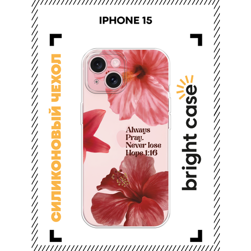 Чехол на Apple iPhone 15 / Айфон 15 с принтом Красные цветы, прозрачный
