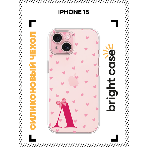 Чехол на Apple iPhone 15 / Айфон 15 с принтом Буква A сердечки, прозрачный
