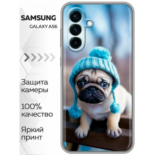 Чехол для Samsung Galaxy A56 с принтом Щенок мопса в шарке (Самсунг Галакси A56)