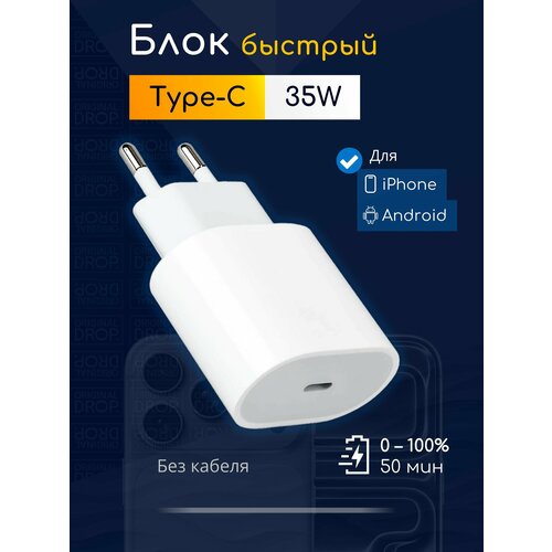 Блок Type-C 35W для быстрой зарядки iPhone 15, 16, 17 Pro Max и Android телефонов / Original drop