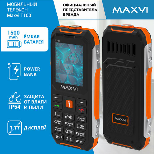 Телефон MAXVI T100, 2 SIM, черный/оранжевый