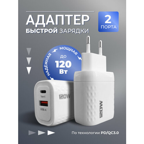 Быстрая зарядка USB A Type C до 120Вт - блок питания адаптер с 2 разъемами