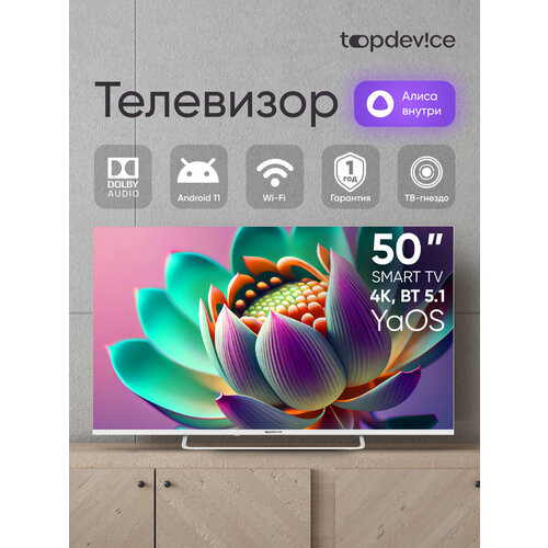 Телевизор Topdevice TV 50" 4K ULTRA HD, Smart TV YaOS, Wi-Fi, Bluetooth,(TDTV50CS07U_WE), белый корпус