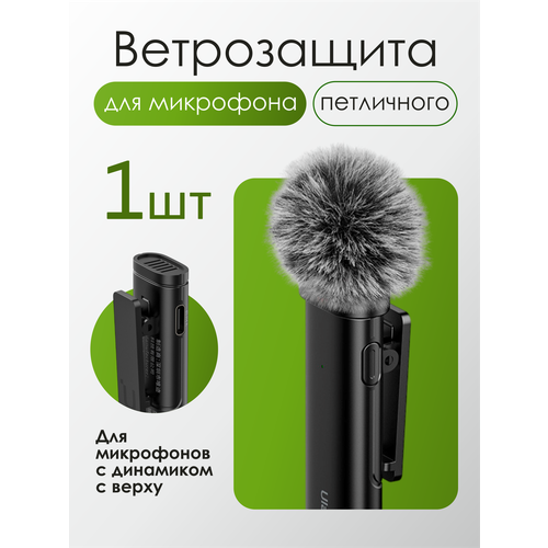 Универсальная ветрозащита для петличного микрофонов, искусственный мех, с креплением