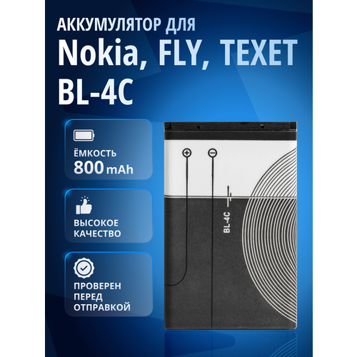 Аккумулятор BL-4C для Nokia 6300, Fly Ezzy 7, TEXET TM-204, FF179, 6131, TRENDY, TM-414, VERTEX S104 и др