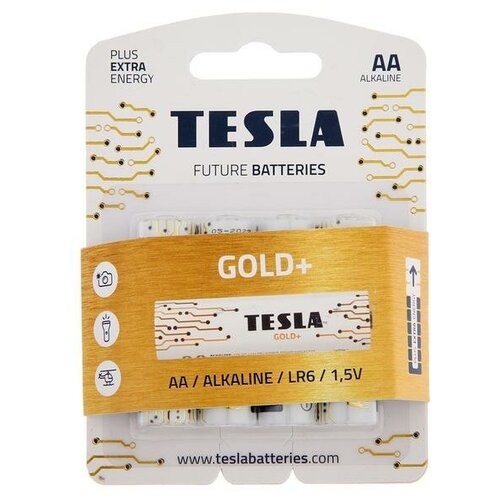 Батарейка алкалиновая Tesla Gold, AA, LR6-4BL, 1.5В, блистер, 4 шт.