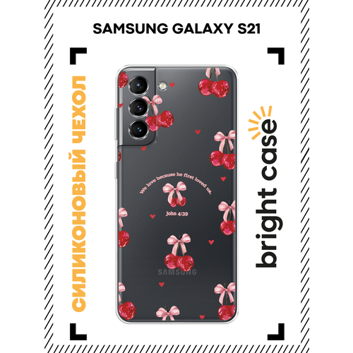Чехол на Samsung Galaxy S21 / Самсунг S21 с принтом Милые вишенки, прозрачный