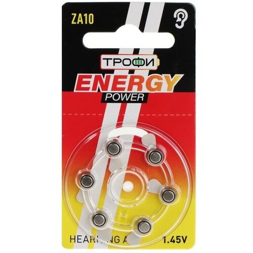 Батарейка цинковая Трофи, ZA10-6BL, для слуховых аппаратов, 1.45В, блистер, 6 шт. 9750019