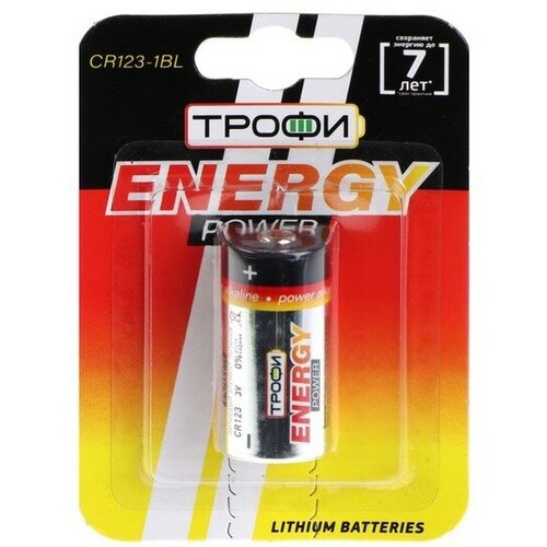 Батарейка литиевая Трофи ENERGY POWER, CR123-1BL, 3В, блистер, 1 шт. 9750016