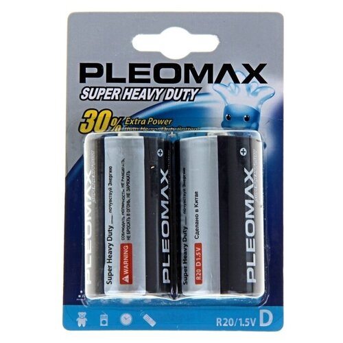 Pleomax Батарейка солевая Pleomax Super Heavy Duty, D, R20-2BL, 1.5В, блистер, 2 шт.