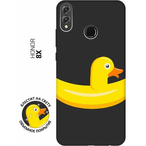 Матовый Soft Touch силиконовый чехол на Honor 8X, Хонор 8Х с 3D принтом "Duck Swim Ring" черный
