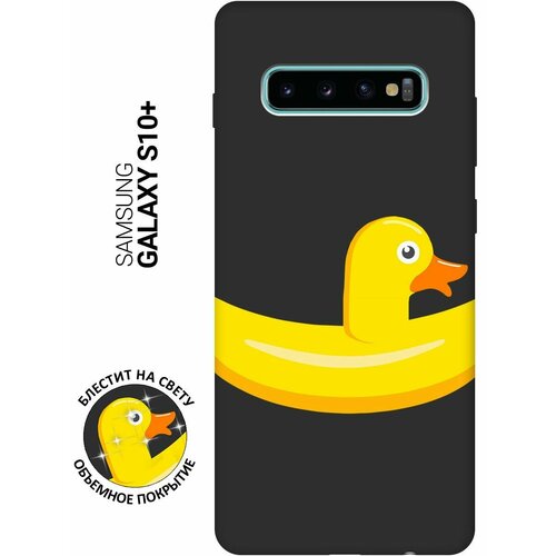 Матовый Soft Touch силиконовый чехол на Samsung Galaxy S10+, Самсунг С10 Плюс с 3D принтом "Duck Swim Ring" черный