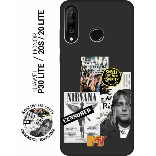 Матовый Soft Touch силиконовый чехол на Honor 20 Lite, 20s, Huawei P30 Lite, Хуавей П30 Лайт, Хонор 20 Лайт, 20s с 3D принтом "Nirvana" черный