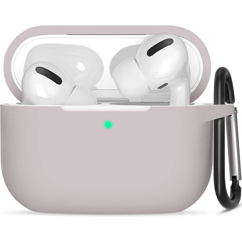 Ультратонкий силиконовый чехол для беспроводных наушников Apple AirPods Pro с карабином / Матовый защитный чехол на Эпл Аирподс Про / Сиреневый