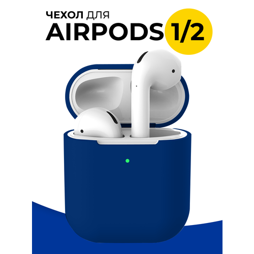 Защитный силиконовый чехол для беспроводных наушников Apple AirPods 1 и 2 / Матовый тонкий чехол на Эпл Аирподс 1 и 2 / Темно-синий