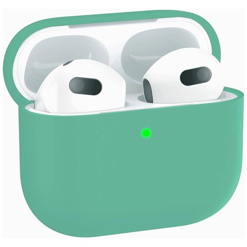 Ультратонкий силиконовый чехол для беспроводных наушников Apple AirPods 3 / Матовый защитный чехол на Эпл Аирподс 3 / Зеленый