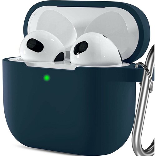 Ультратонкий силиконовый чехол для беспроводных наушников Apple AirPods 3 c карабином / Матовый защитный чехол на Эпл Аирподс 3 / Синий