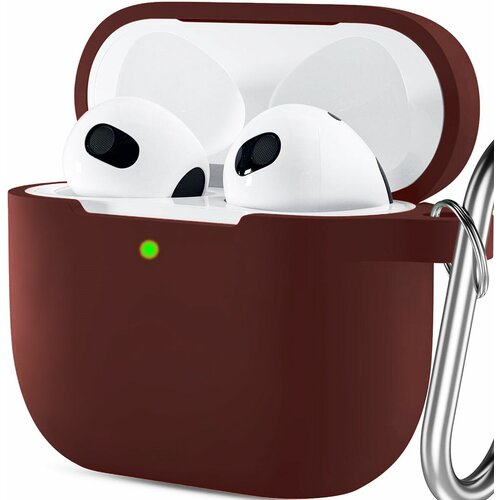 Ультратонкий силиконовый чехол для беспроводных наушников Apple AirPods 3 c карабином / Матовый защитный чехол на Эпл Аирподс 3 / Красный