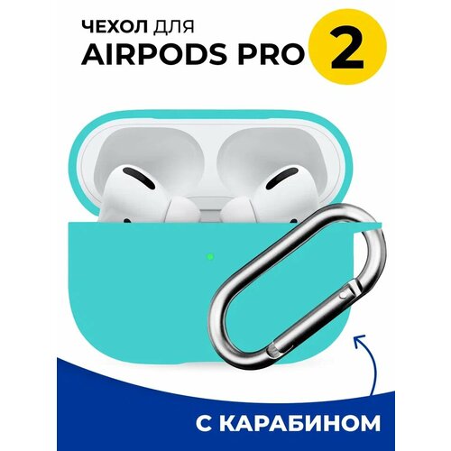 Защитный силиконовый чехол для беспроводных наушников Apple AirPods Pro 2 с карабином / Матовый тонкий чехол на Эпл Аирподс Про 2 / Бирюзовый