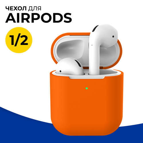 Защитный силиконовый чехол для беспроводных наушников Apple AirPods 1 и 2 / Матовый тонкий чехол на Эпл Аирподс 1 и 2 / Оранжевый