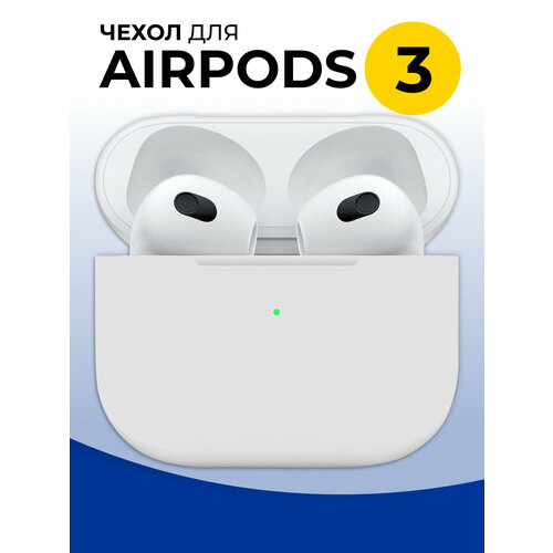 Защитный силиконовый чехол для беспроводных наушников Apple AirPods 3 / Матовый тонкий кейс на Эпл Аирподс 3 / Противоударный / White