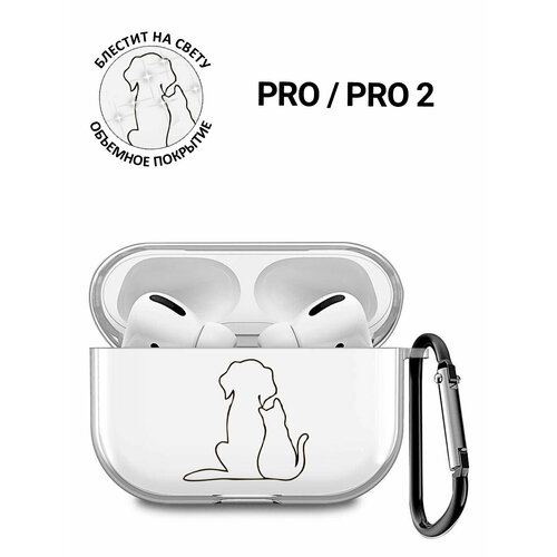 Прозрачный чехол для наушников Apple AirPods Pro / АирПодс Про силиконовый с 3D принтом "Cat and Dog"