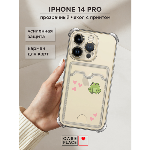 Чехол на Apple iPhone 14 Pro (Айфон 14 Про) с картой и принтом С лягушкой и сердечками