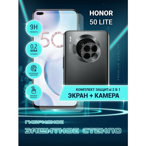 Защитное стекло для Honor 50 Lite на экран и камеру, гибридное (пленка + стекловолокно), Crystal boost