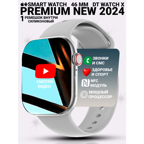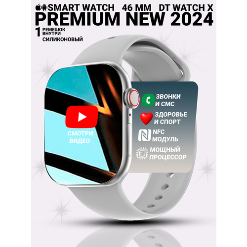 Умные часы DT WATCH X, Premium Pro Smart Watch 46 мм — NFC, HD AMOLED, Смарт-часы мужские и женские серебристые