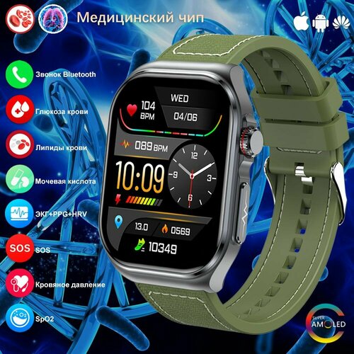 Умные часы мужские и женские для здоровья с мониторингом артериального давления и уровня глюкозы в крови, фитнес трекером и наушниками Bluetooth