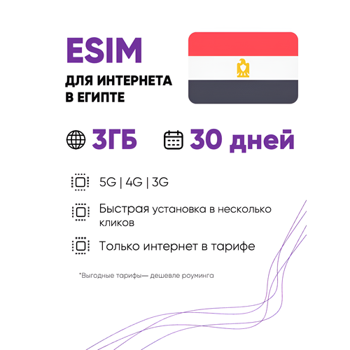 ESIM для интернета в Египте 3 ГБ на 30 дней. Виртуальная сим-карта для Египта