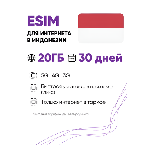 ESIM для интернета в Индонезии 20 ГБ на 30 дней. Виртуальная сим-карта для Индонезии