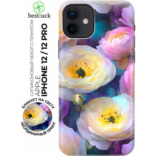 Силиконовый чехол на Apple iPhone 12 / 12 Pro с принтом "Кружева из ранункулюсов"