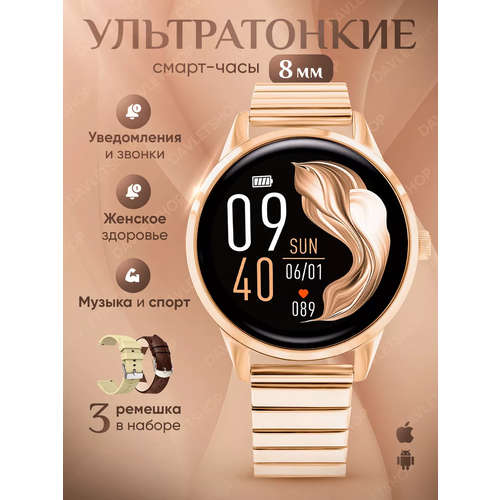 Умные часы HK10 Pro Max, AMOLED экран 2.2, NFC, ChatGPT для iOS и Android, 3 ремешка, Бронзовый