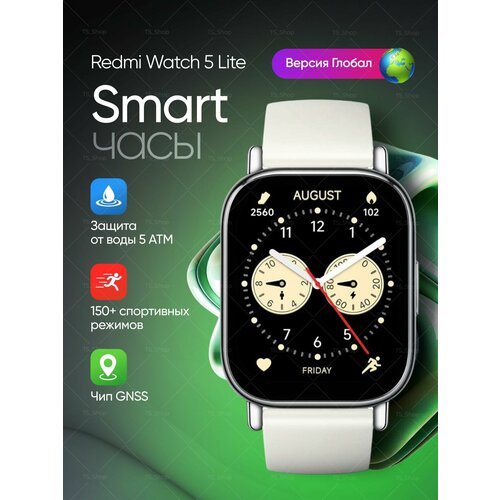 Умные смарт часы Redmi Watch 5 Lite c уведомлениями и звонками, белое золото