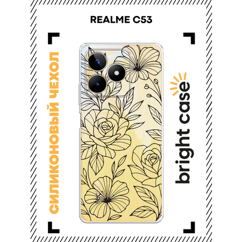 Чехол на Realme C53/C51/Note 50 / Реалми С53/С51/Нот 50 с принтом Контуры цветов, прозрачный