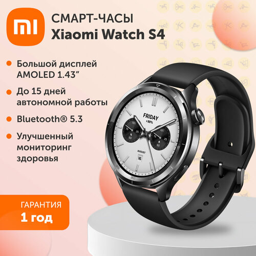 Смарт-часы Xiaomi Watch S4, AMOLED-экран, чёрный, водонепроницаемые