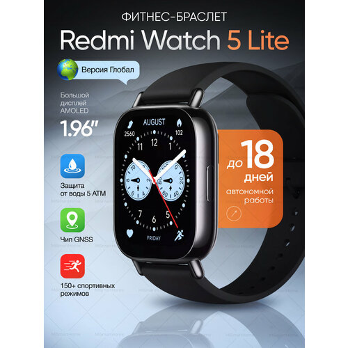 Xiaomi Умные часы Redmi Watch 5 Lite AMOLED, GPS, NFC, Bluetooth 5.0, Black