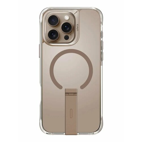 Чехол с подставкой Uniq HYBRID ELEVA (MagSafe) для iPhone 16 Pro Max 6.9", цвет благородный золотой (TAUPE GOLD)