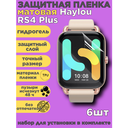 Комплект 6 шт. Защитная пленка на смарт часы Haylou RS4 Plus, матовая
