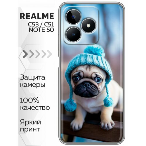 Чехол для Realme C53, C51, C51S, Note 50, Narzo N53 Щенок мопса в шарке (Реалми С53, С51s, С51, Нот 50, Нарзо Н53)