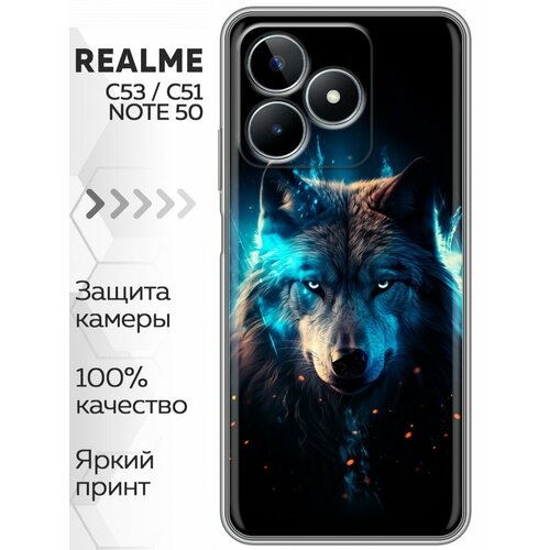Чехол для Realme C53, C51, C51S, Note 50, Narzo N53 Волк ночной (Реалми С53, С51s, С51, Нот 50, Нарзо Н53)