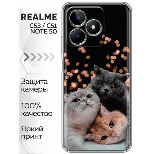 Чехол для Realme C53, C51, C51S, Note 50, Narzo N53 Смешные котики (Реалми С53, С51s, С51, Нот 50, Нарзо Н53)