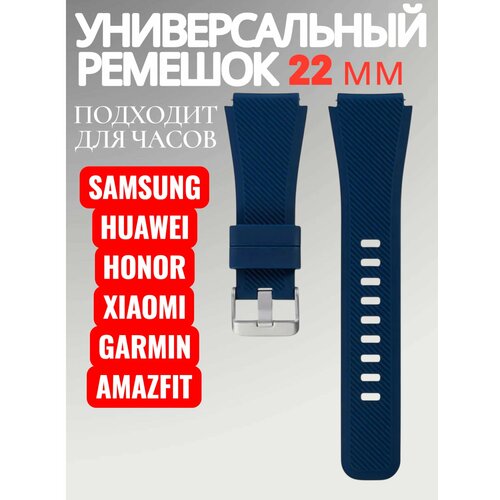 Универсальный спортивный ремешок для Xiaomi, Huawei, Samsung, Garmin, 22 мм. синий/черный.
