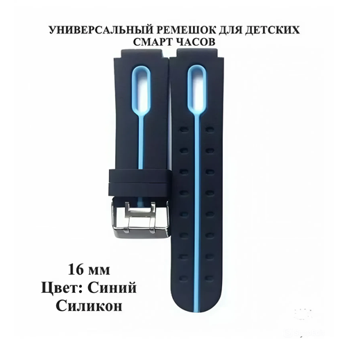 Универсальный ремешок для детских умных смарт часов Q12B, Q12, JET KID, Smart Baby Watch, Q100, Q60, Q80, Q90 и других. цвет черный/синий. 16 мм.