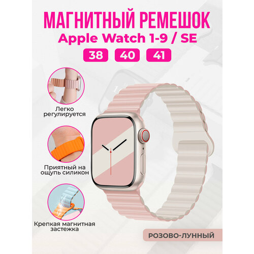 Магнитный силиконовый ремешок для Apple Watch 1-9 / SE (38/40/41 мм), розово-светло-бежевый