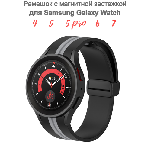 Ремешок с магнитной застежкой для Samsung Galaxy Watch 4 /5 / 5 pro/6/7 (черный с серым))