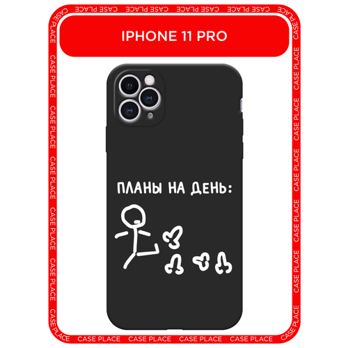 Черный матовый чехол на Apple iPhone 11 Pro / Айфон 11 Про с принтом План на день белый