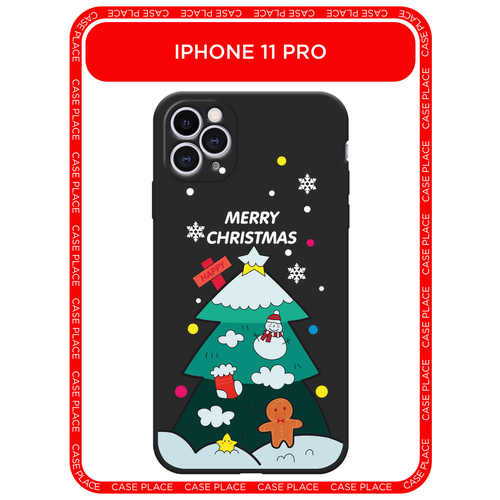 Черный матовый чехол на Apple iPhone 11 Pro / Айфон 11 Про с принтом Christmas tree white