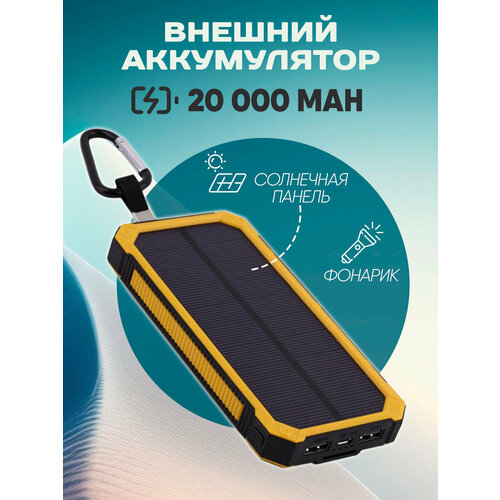 Повербанк 20000 mAh портативный внешний аккумулятор с быстрой зарядкой, желтый